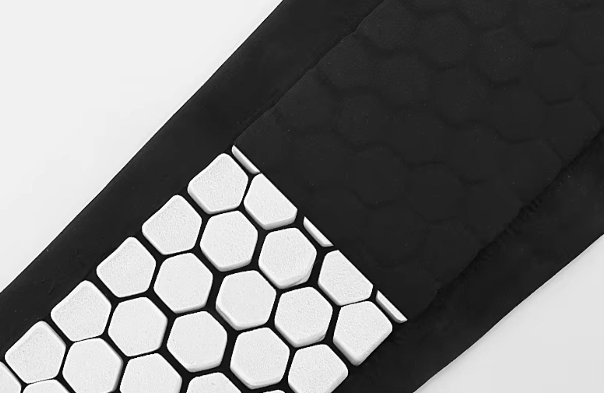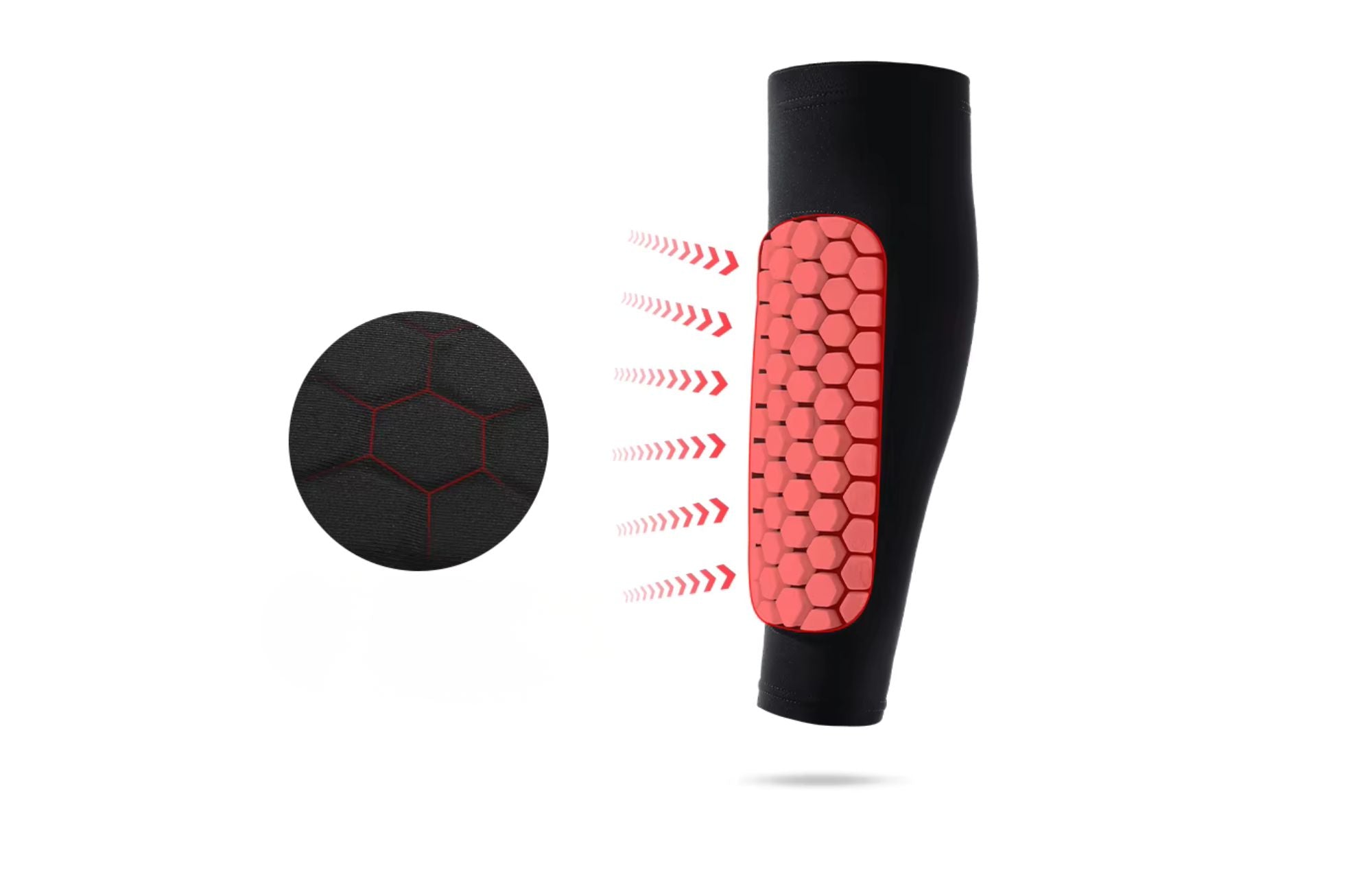 Das Dämpfungssystem mit sechseckiger Polsterung verteilt die Aufprallkraft effektiv und schützt Muskeln sowie Gelenke der Beine während der Aktivität.